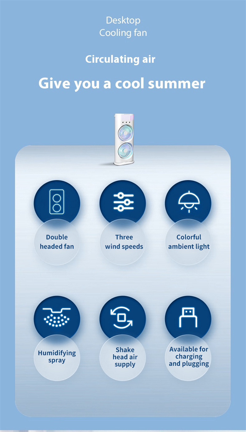 Stay cool and comfortable with the HydroChill Dual-Function Portable Humidifier Fan. This innovative device combines the benefits of a spray fan, humidifier, and air conditioner into one compact and portable unit, making it the perfect solution for your household cooling needs.