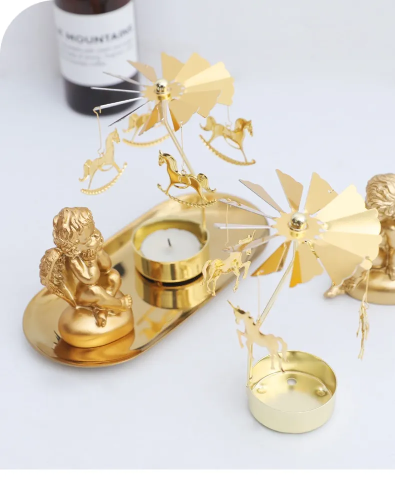 Aromatherapy Candlestick Golden Rotating Atmosphere Device – Elegant and Soothing