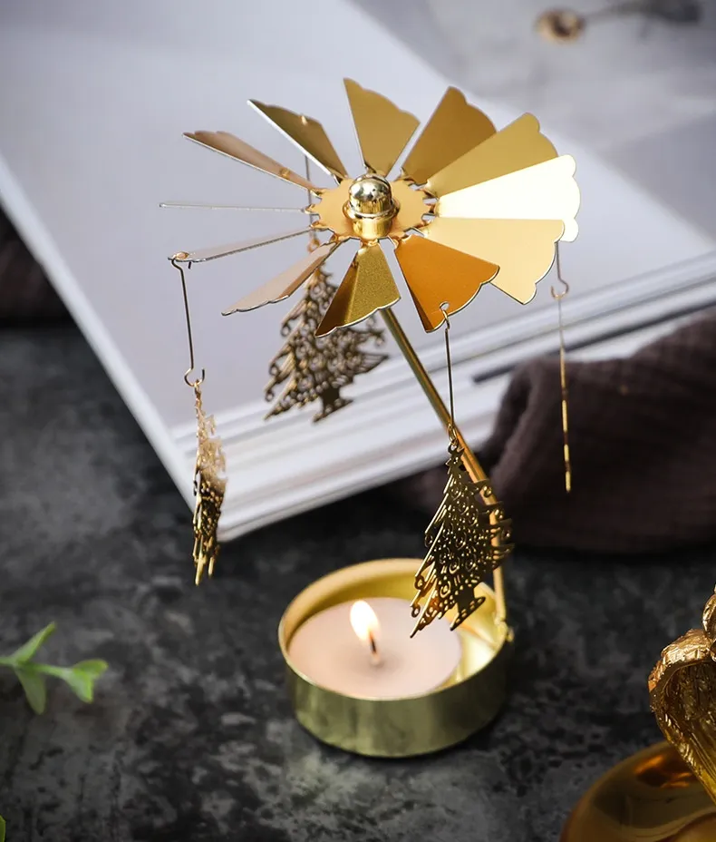 The gentle rotation of the candlestick enhances the ambiance, reflecting soft light and adding a dynamic yet calming element to your space.