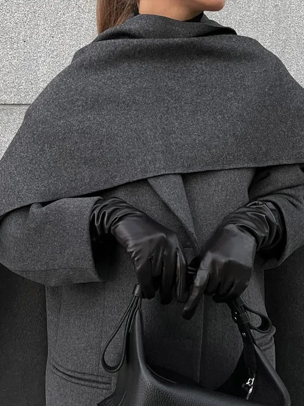 Scarf Collar Design: The standout feature of this coat is its oversized scarf collar, offering extra warmth and a