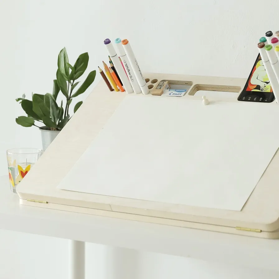 Organized Workspace: One of the most significant benefits of using an art table is the organization it offers. With designated storage spaces for materials and tools, an art table helps keep your workspace neat and tidy, allowing you to focus on your creative process without distractions. You’ll have everything you need within arm’s reach, making your work more efficient and enjoyable.