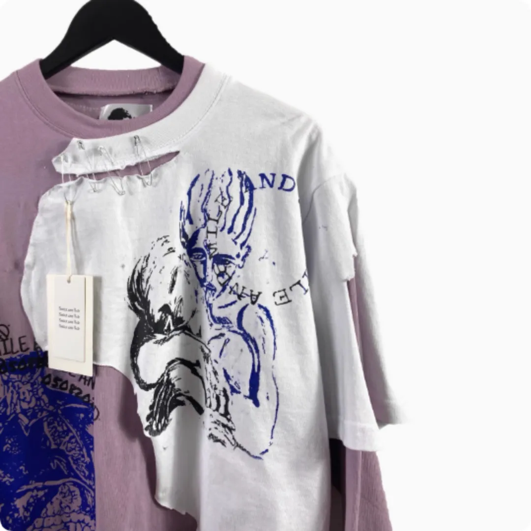 In conclusion, the Artistic Print with Two Pieces of Distressed Long Sleeves is a must-have for anyone who loves bold, creative fashion that makes a statement. The unique artistic print, paired with the distressed long sleeves, creates a trendy and edgy look that’s perfect for casual outings or adding some flair to your everyday wardrobe. The soft, comfortable fabric ensures you feel as good as you look, while the relaxed fit allows for easy movement and a flattering shape.
