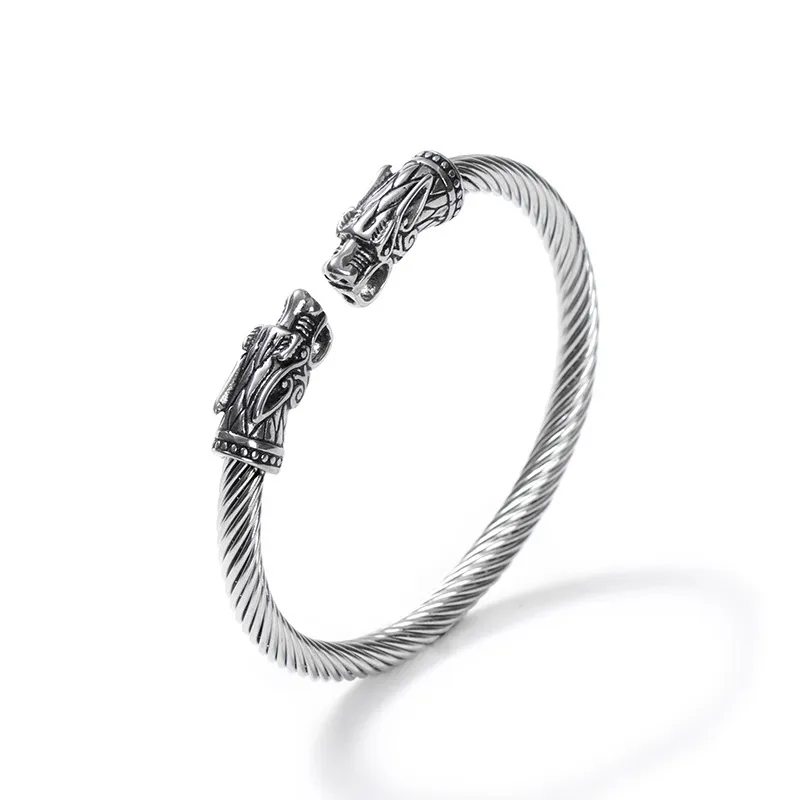 Asgard Crafted Grey Wolf 's Head Torc Bracelet