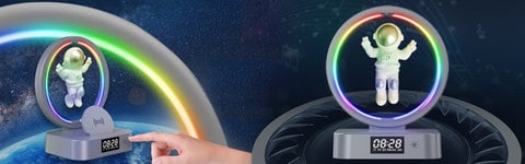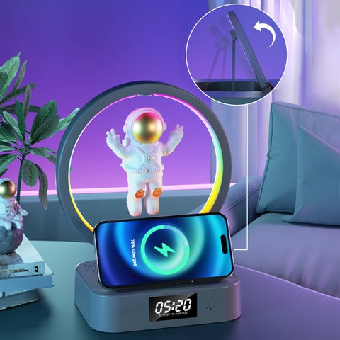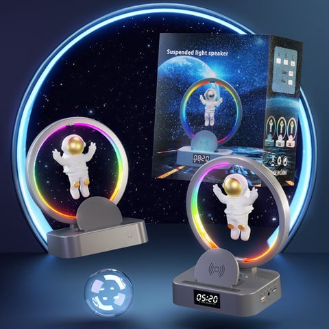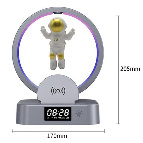 Experience futuristic sound quality with the USB magnetic levitation Bluetooth speaker – Astronaut Edition! This multifunctional speaker integrats a speaker, lamp, and wireless charger.