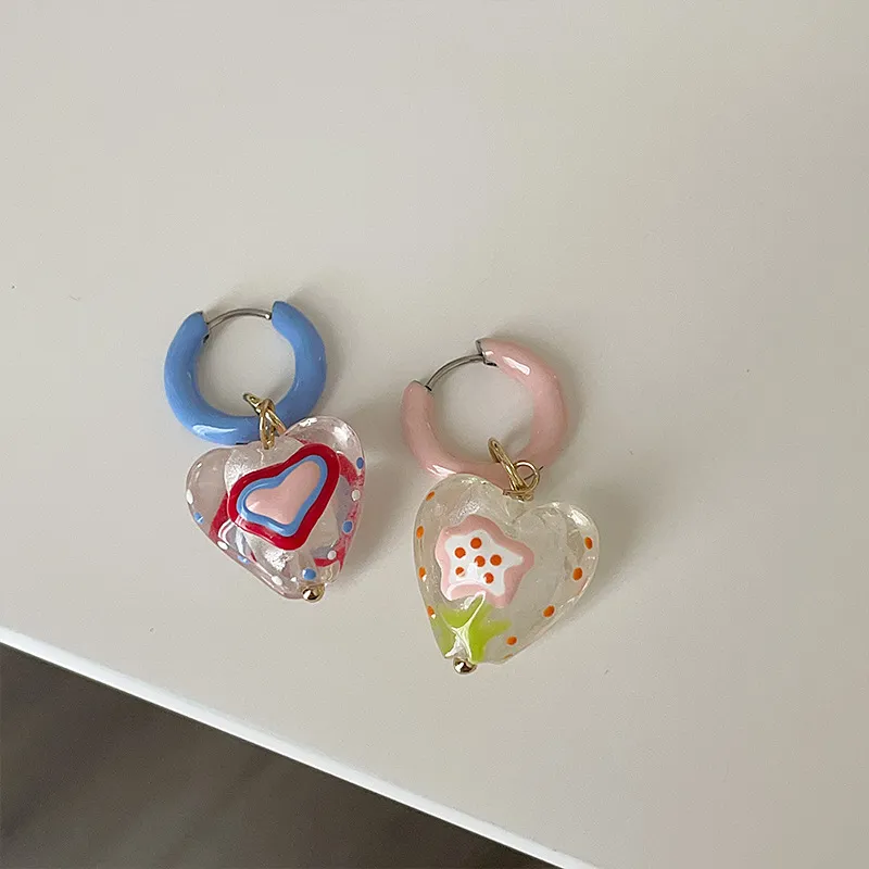 Asymmetric Design Dripping Transparent Heart-shaped Earrings