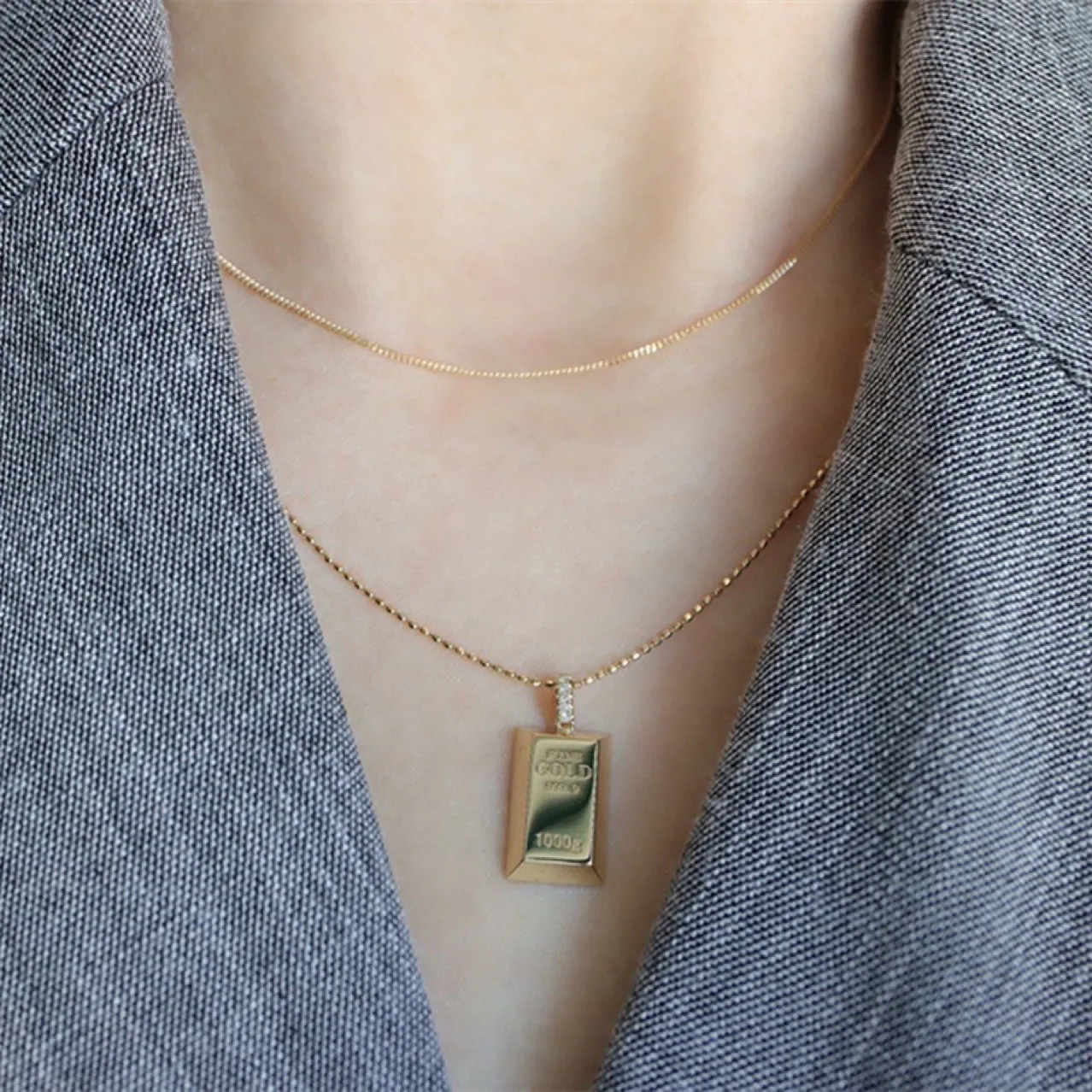 Au750 Gold Gold Bar Natural Diamond Pendant Necklace