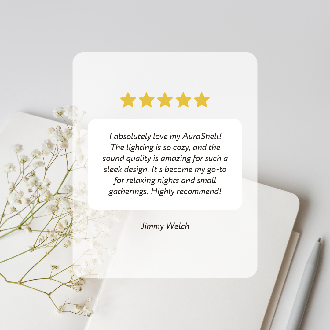Picture yourself enjoying soft, ambient lighting paired with crystal-clear audio, all controlled with just a tap from your phone. The AuraShell turns everyday moments into extraordinary experiences.