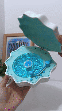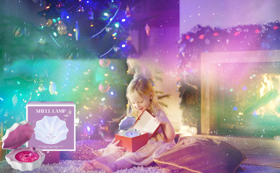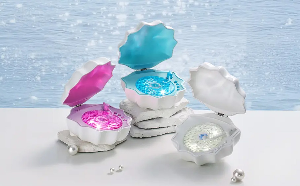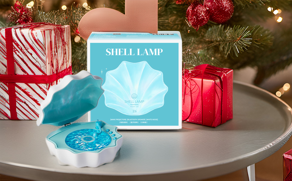 shell-inspired design captures the essence of the sea, while the combination of wave and aurora projections creates a mesmerizing
