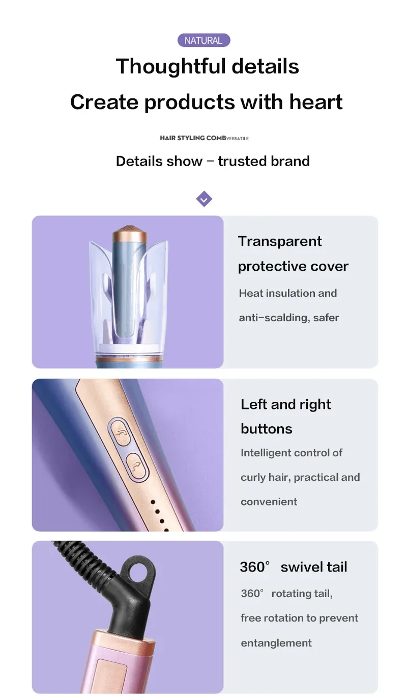 The Automatic Rotating Curling Iron is designed for individuals who want consistent, long-lasting curls with minimal effort. Ideal for busy mornings, home styling routines, and special occasions, this tool suits all skill levels—from beginners to experienced stylists. It is especially well suited for New Zealand lifestyles that value time-saving beauty tools, reliable performance, and easy styling without complicated techniques.