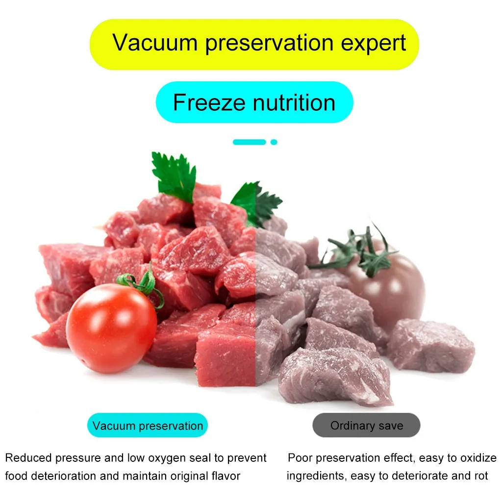 - Powerful Suction: Effectively removes air from vacuum bags, preventing oxidation, freezer burn, and spoilage.