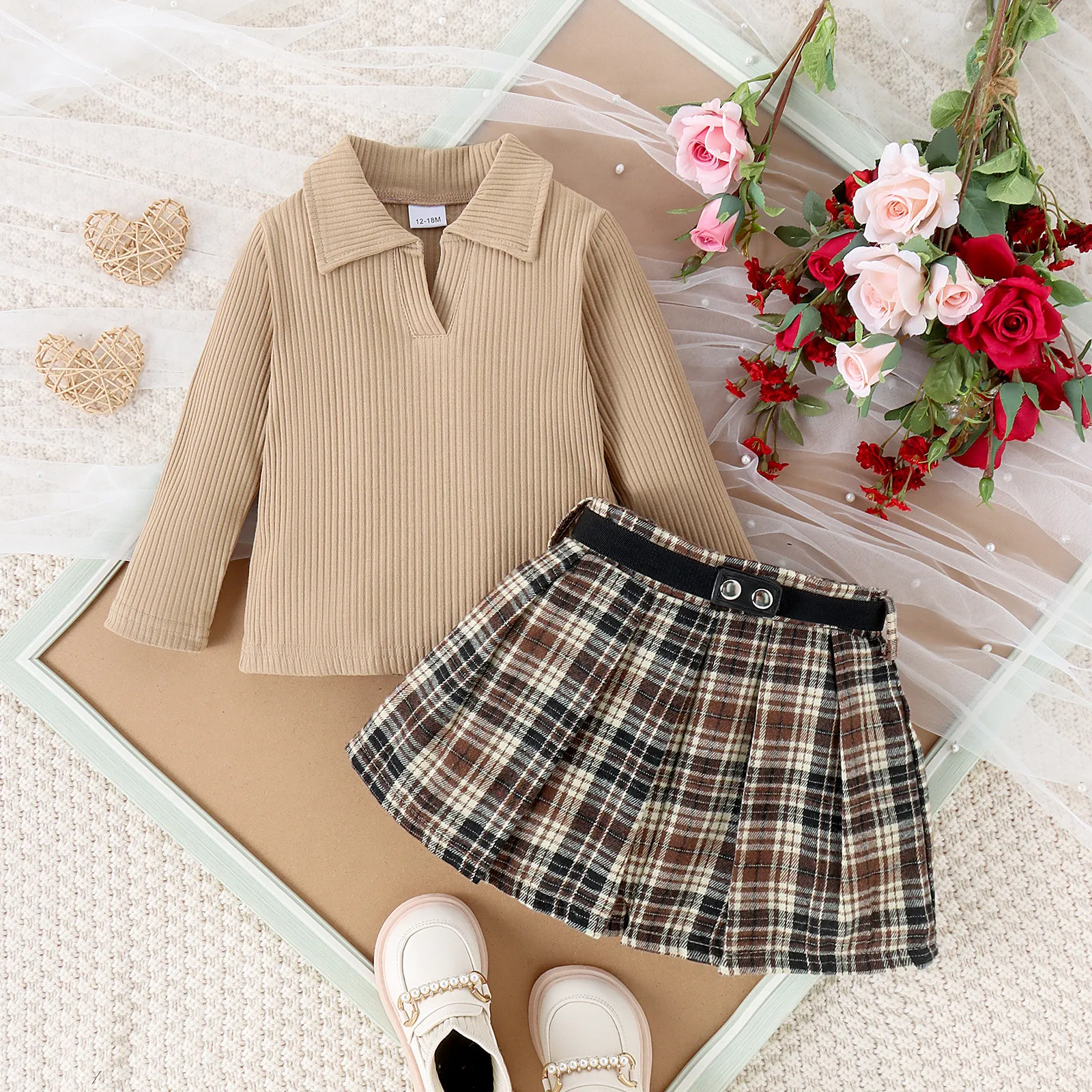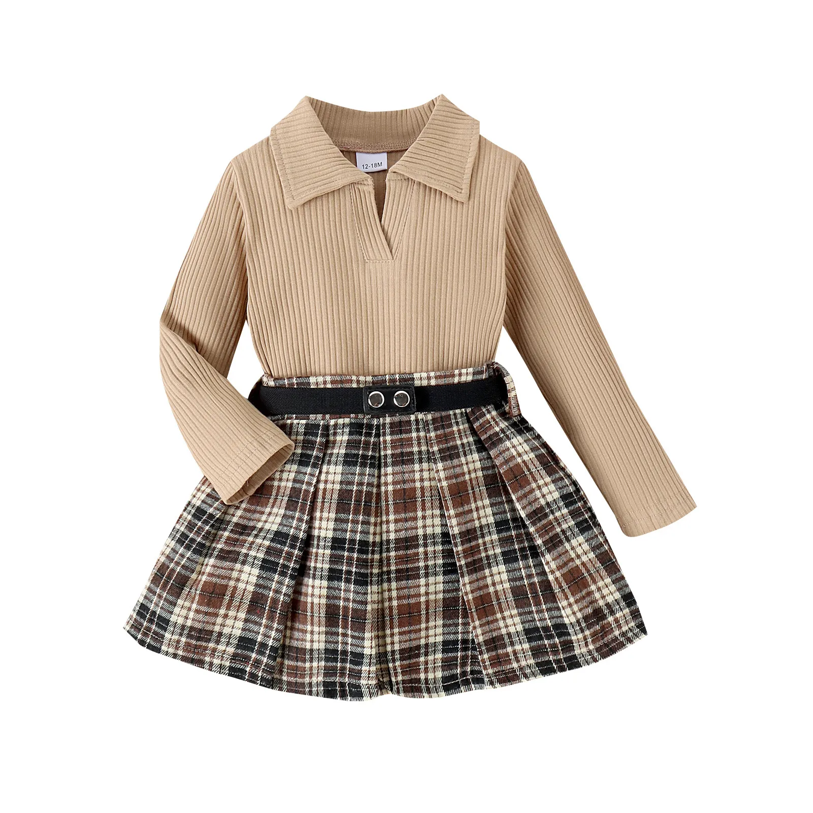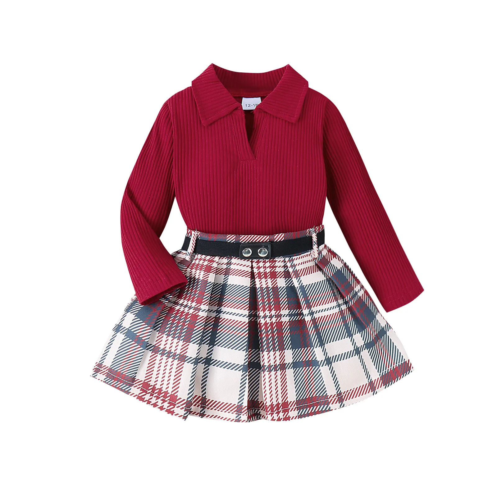 Autumn & Winter Girls' Suit – Long Sleeve Top with Pleated Skirt