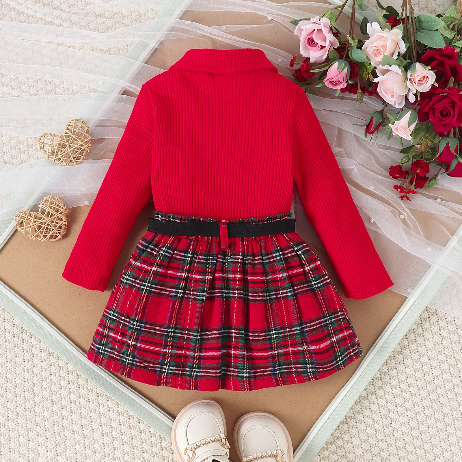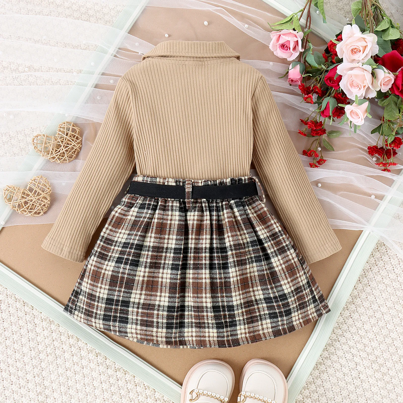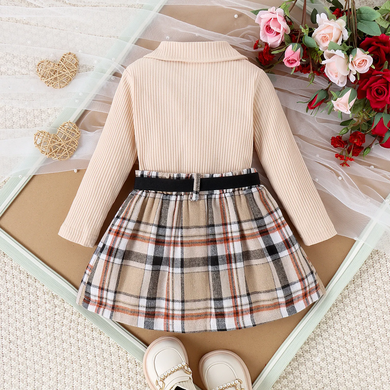 Autumn & Winter Girls' Suit – Long Sleeve Top with Pleated Skirt