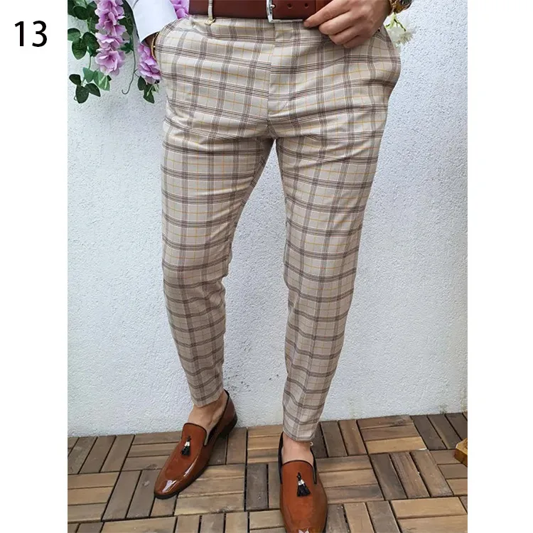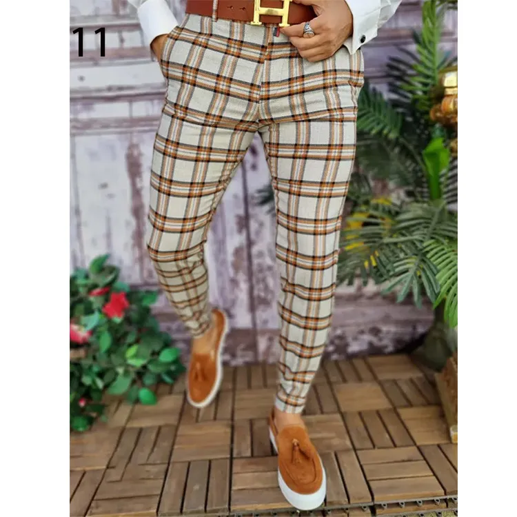 Autumn & Winter 3D Printed Slim-fit Plaid British Casual Trousers