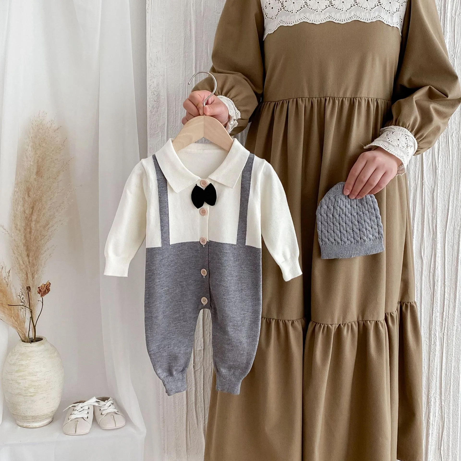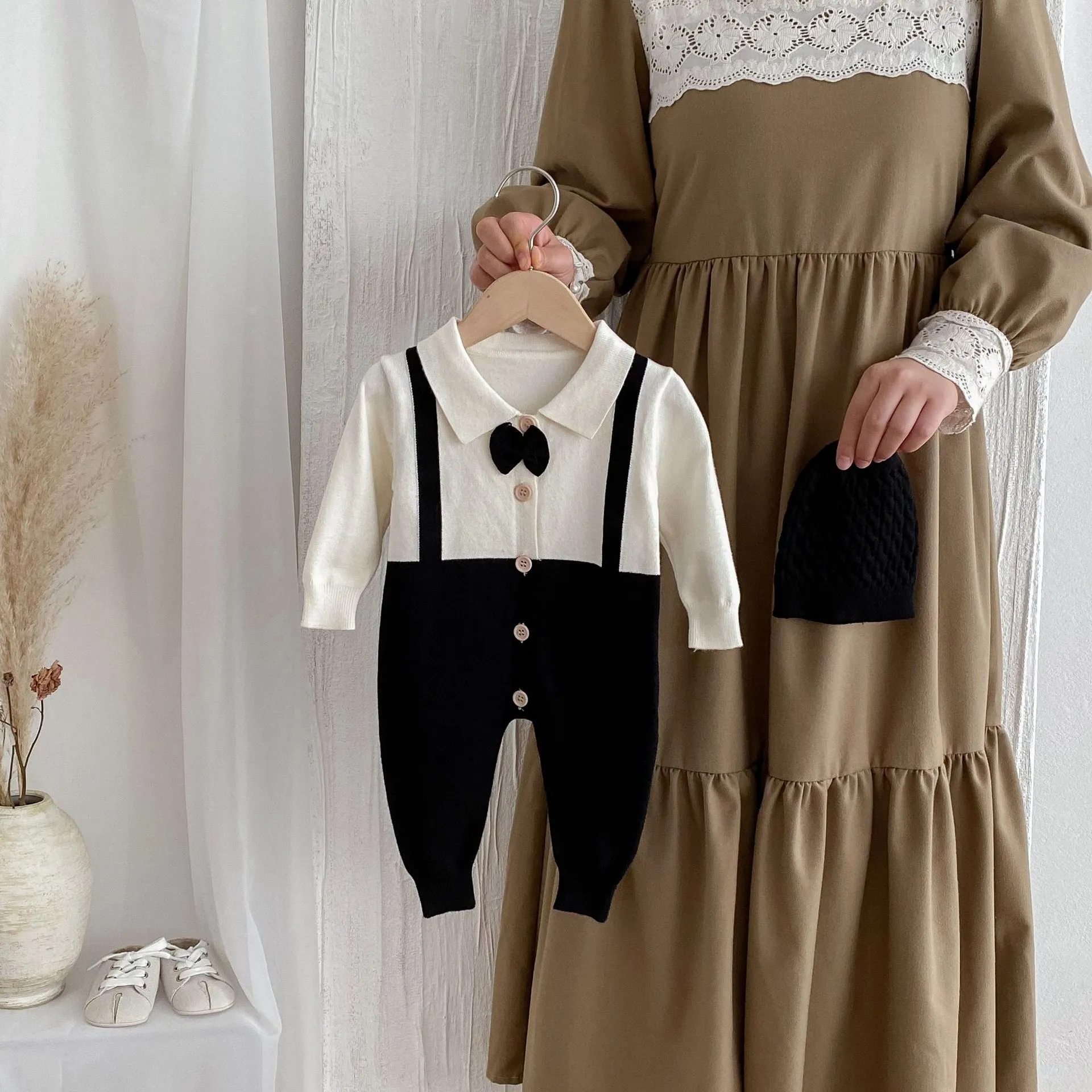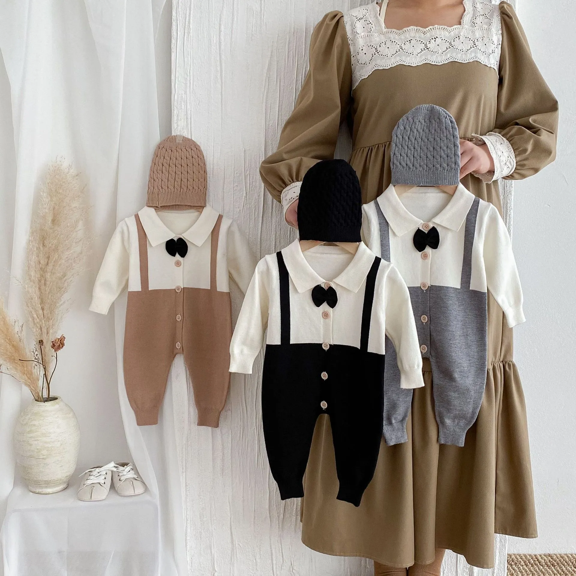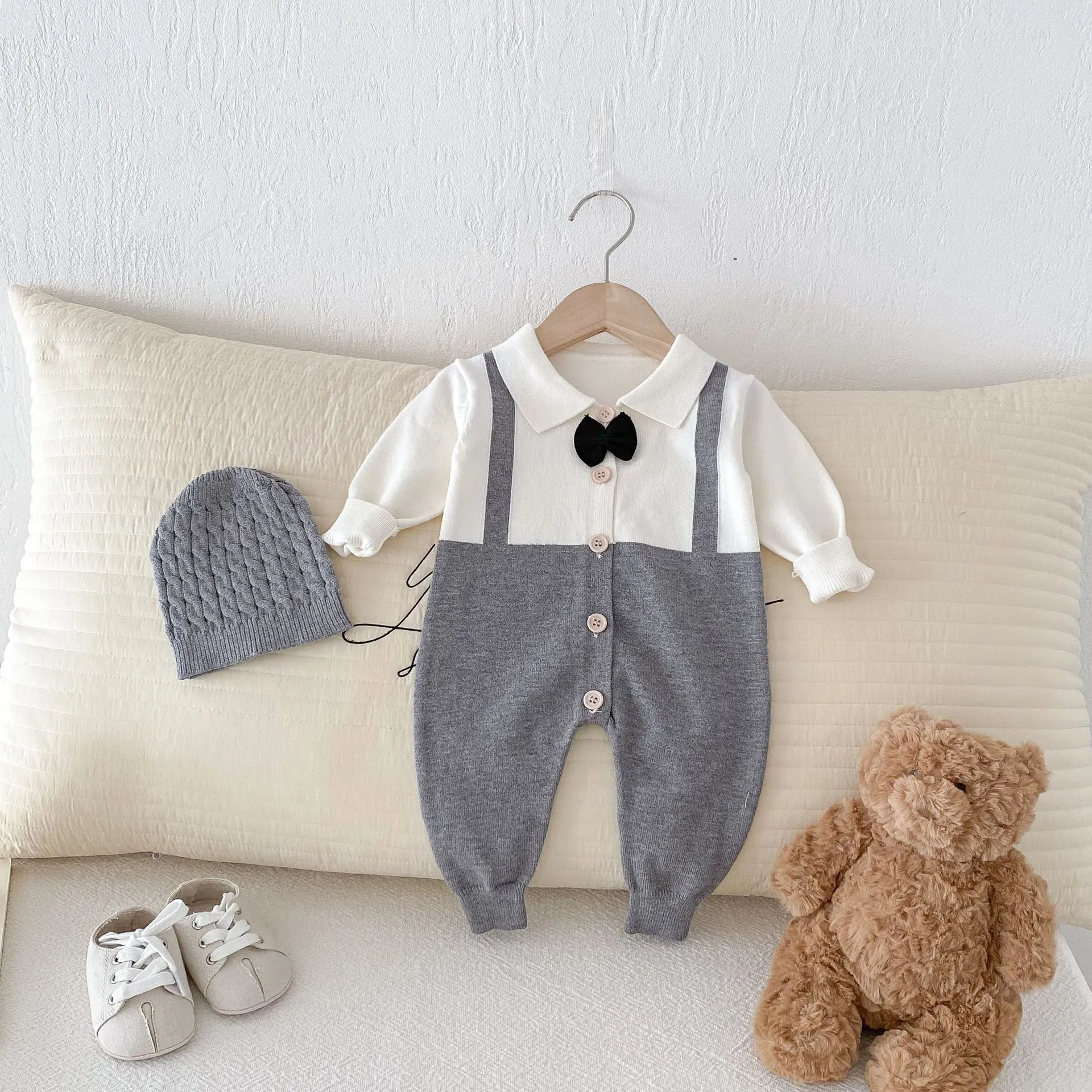 The Autumn and Winter New Children's Clothing Infant Lapel Gentleman Tie False Two-piece Suit is the perfect outfit for your little one to embrace a refined, elegant look this season. Combining timeless style with warmth and comfort, it’s ideal for formal events, family photos, or any occasion that calls for a touch of class. With its easy-to-wear design, high-quality fabric, and charming details, this two-piece suit will make your little gentleman shine.