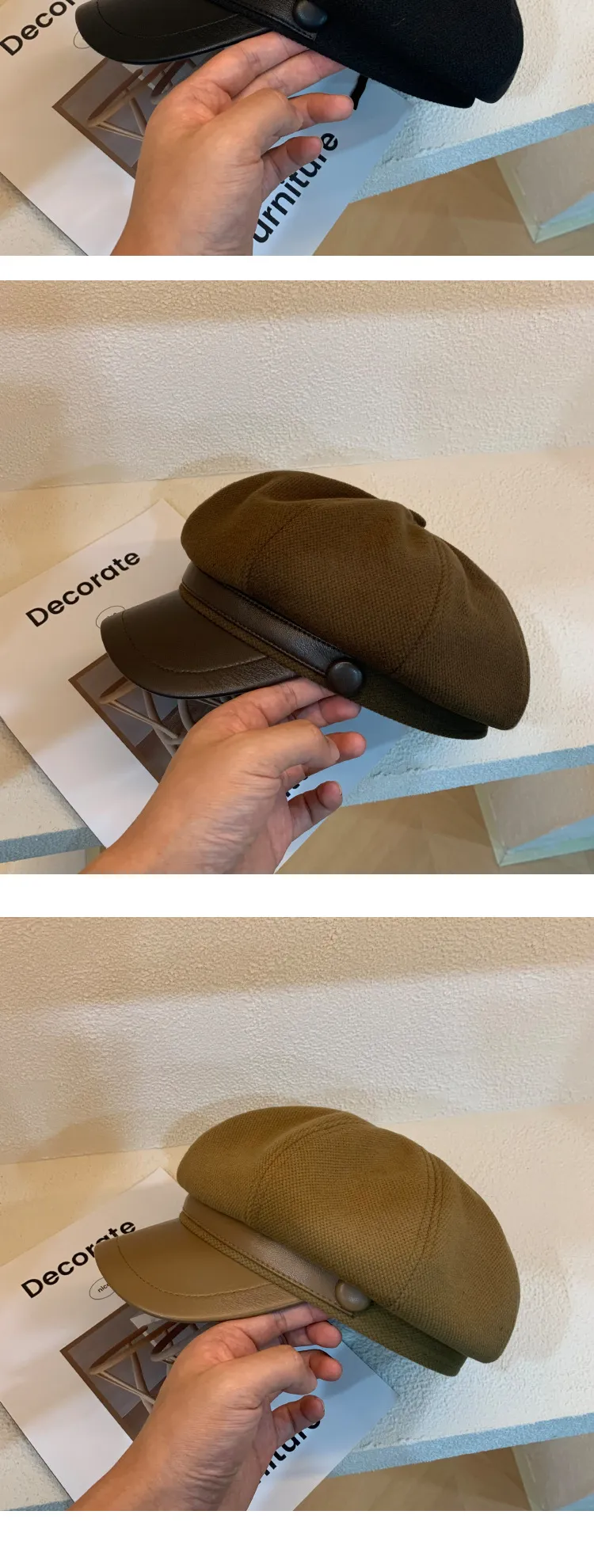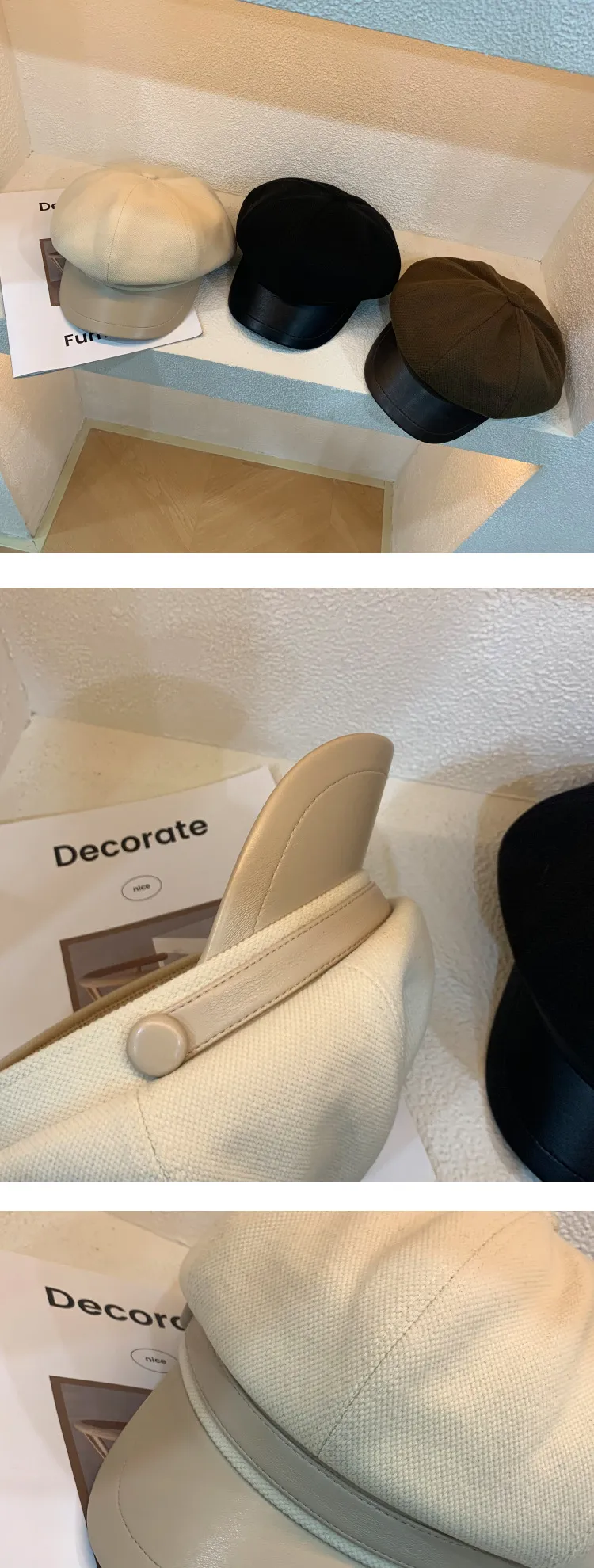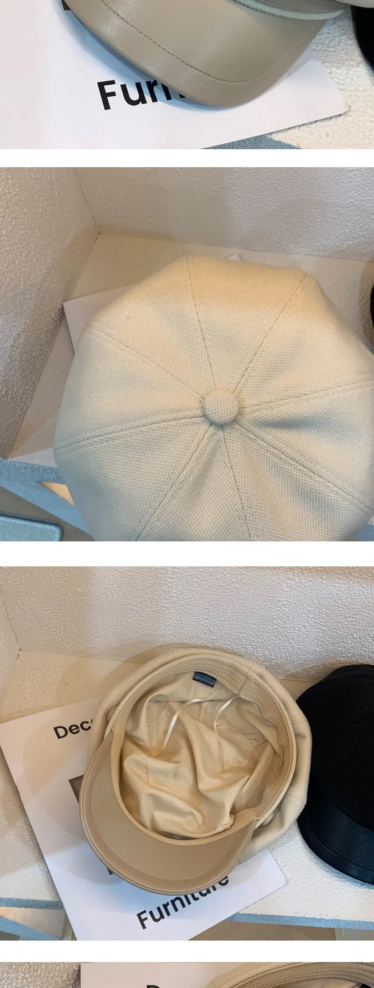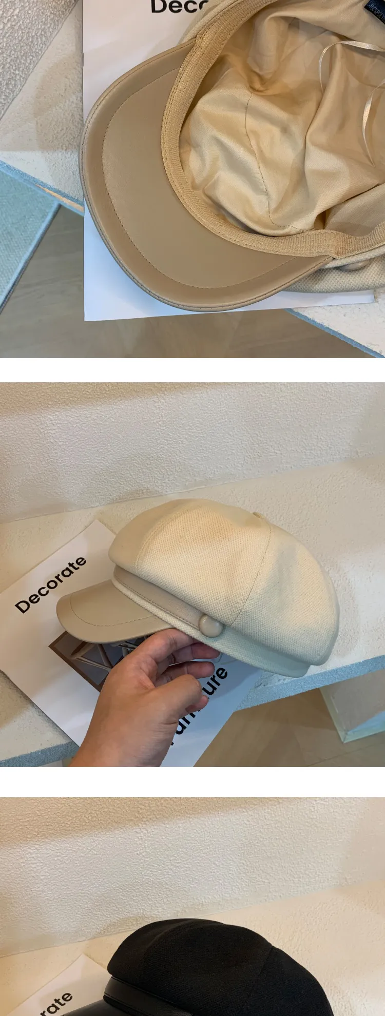 Color: Button leather brim octagonal cap-black, button leather brim octagonal cap-coffee, button leather brim octagonal cap-cream-white