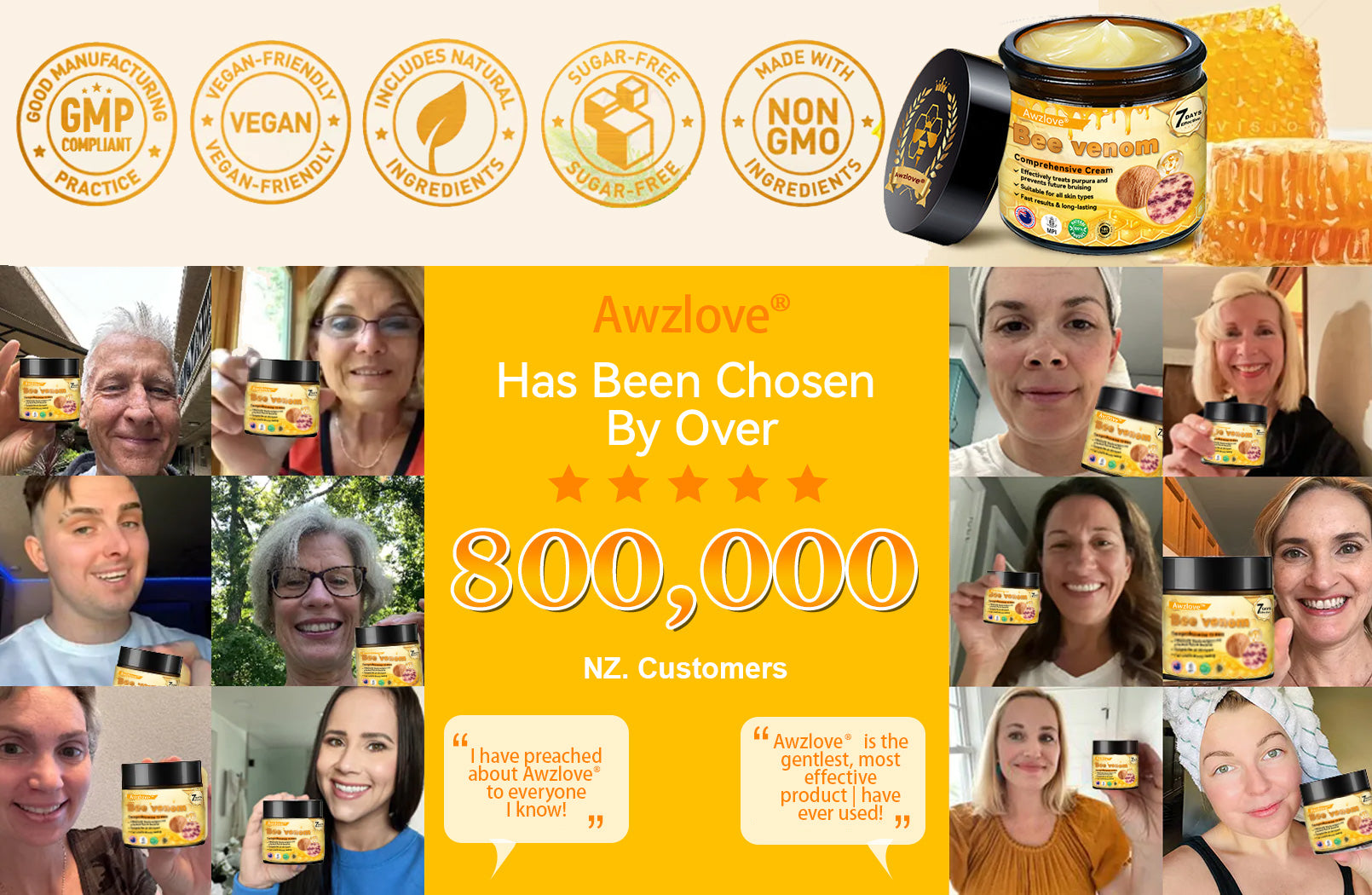 ✅ Trustworthy Brand: AWZLOVE® Bee venom Comprehensive Cream is a trusted brand, known for its commitment to providing high-quality skincare products backed by research and customer satisfaction.