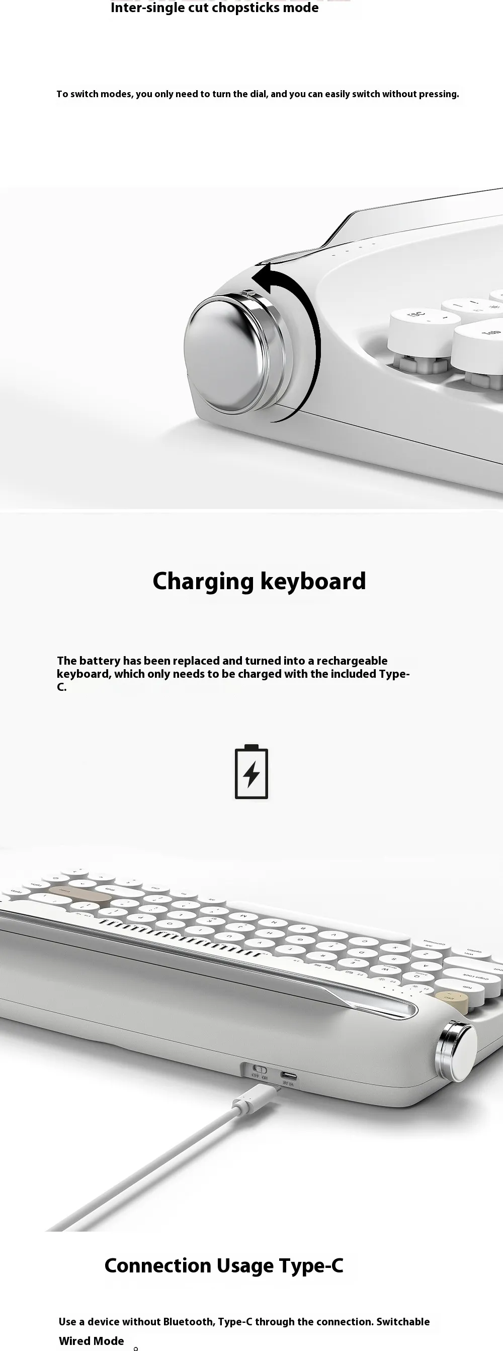 In conclusion, the B307 Rechargeable Retro Bluetooth Wireless Keyboard offers a perfect combination of retro style and modern functionality. Its wireless Bluetooth connectivity, long-lasting rechargeable battery, and comfortable typing experience make it the ideal accessory for both work and play. Whether you're typing on a laptop, tablet, or smartphone, this keyboard provides a vintage charm that makes your workspace unique while offering the convenience of modern technology. Upgrade your desk with the B307 and enjoy a typing experience that's both nostalgic and practical.