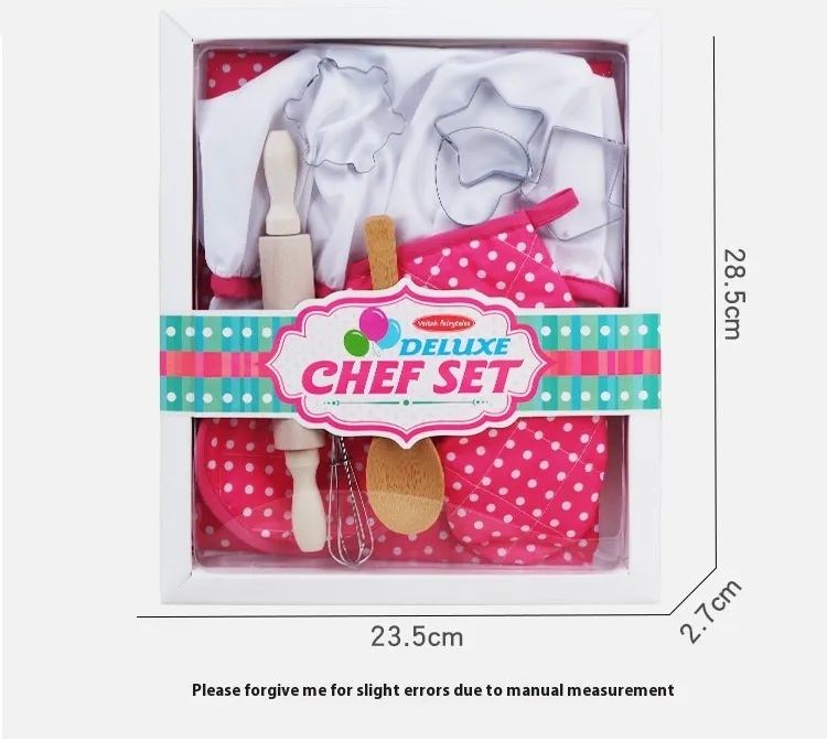 Size: clothes length 51CM * width 40CM, gloves length 17CM * width 12.5CM, rolling pin long 20CM, spoon Long 14.5CM, hat diameter 26CM, egg