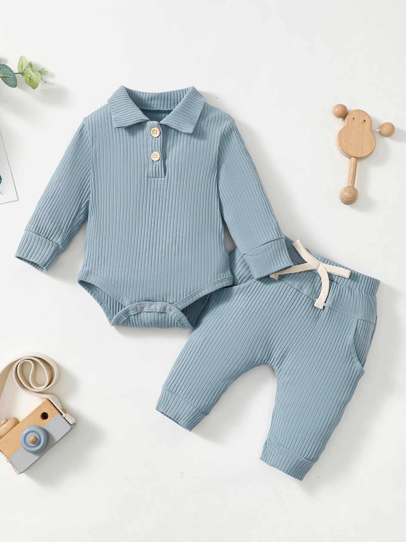 Baby Boy Cotton Hollow Striped Polo Shirt Trousers Suit