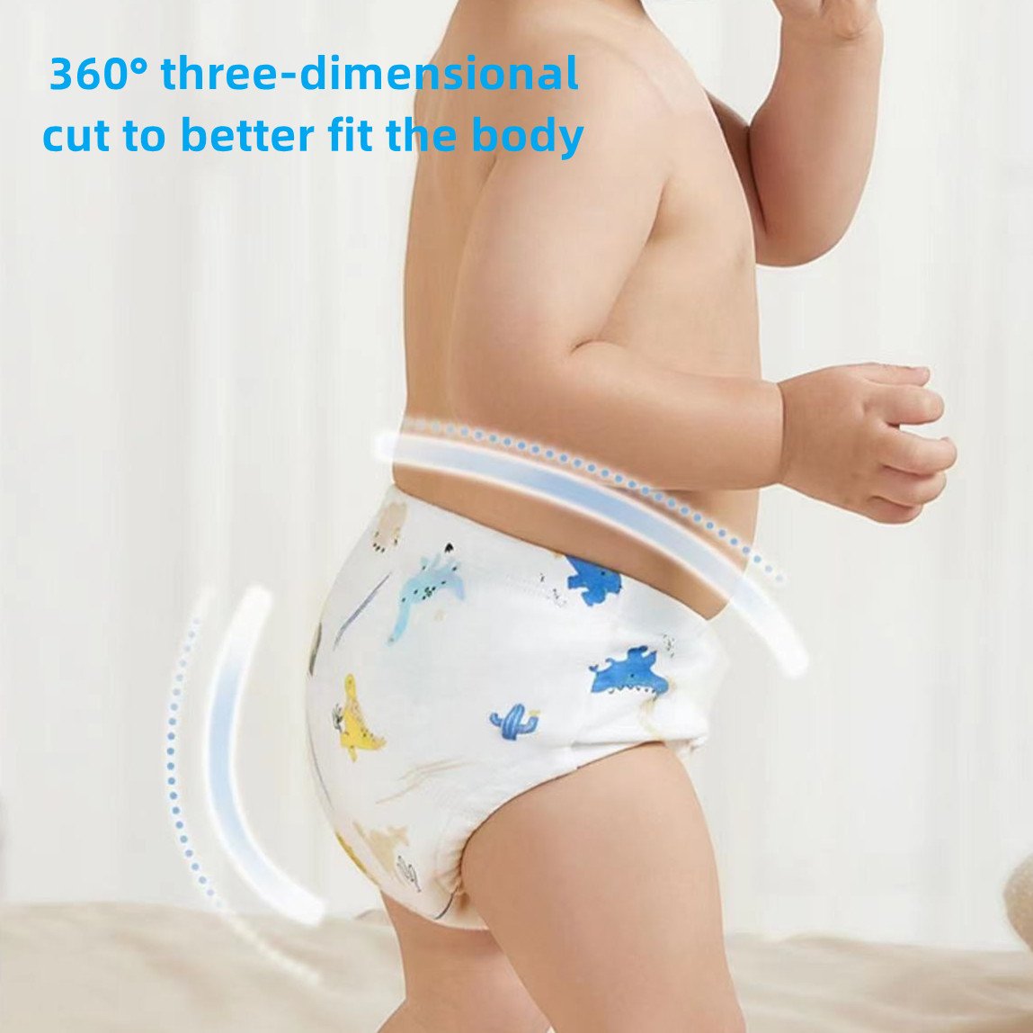 Learning pants are underwear that help babies transition from diapers to learning to go to the toilet. When wearing learning pants, babies will feel wet and uncomfortable and will remind mom and dad to help them take off their underwear and gradually form their own consciousness to complete the transition period.
