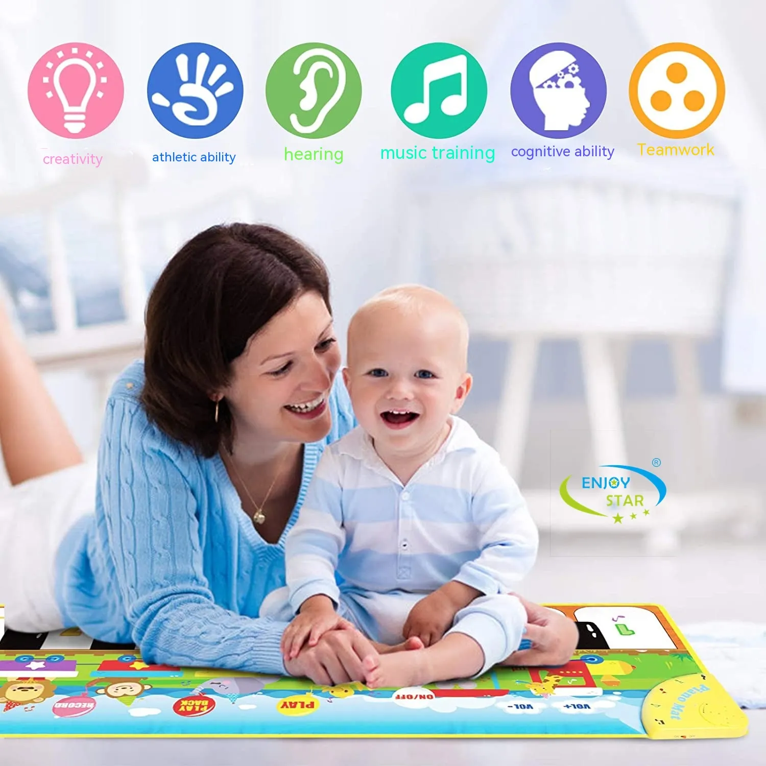 Each section of the crawling mat is designed to promote early learning and development, from recognizing shapes and colors to improving hand-eye coordination and motor skills. The mat includes features like built-in rattles, crinkling sounds, and soft textures that respond to touch, keeping babies entertained while fostering their sensory development. Whether they are rolling, crawling, or simply lying down, babies will be engaged in a world of discovery with this multifunctional toy.