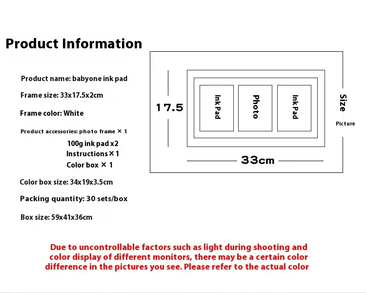 Picture frameX1pc InkpadX100gX2pcs SpecificationX1pc Color boxX1pc