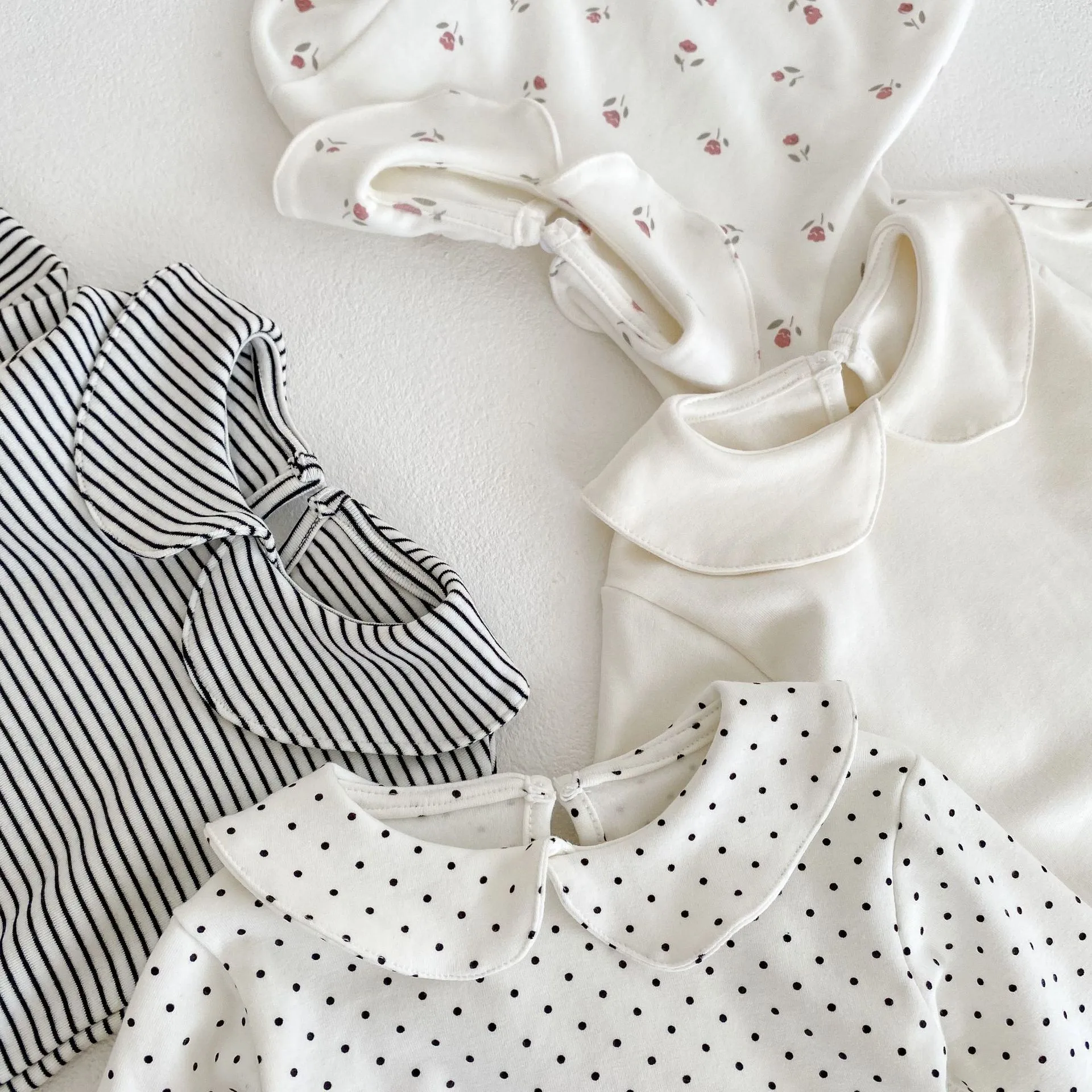 Adorable and Stylish Design: The doll collar and triangle design add a cute and fashionable touch, making your baby look