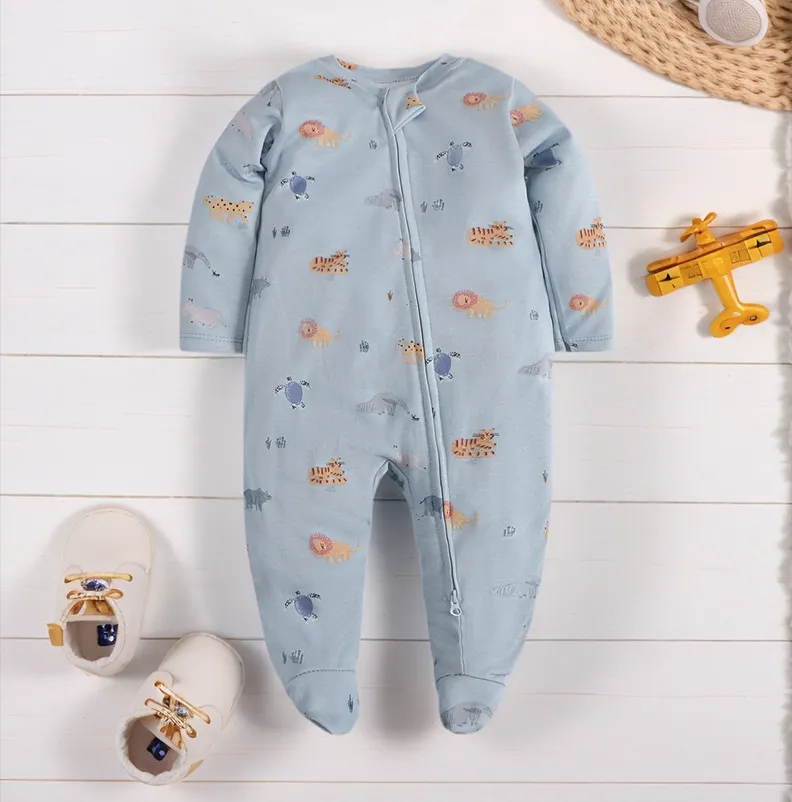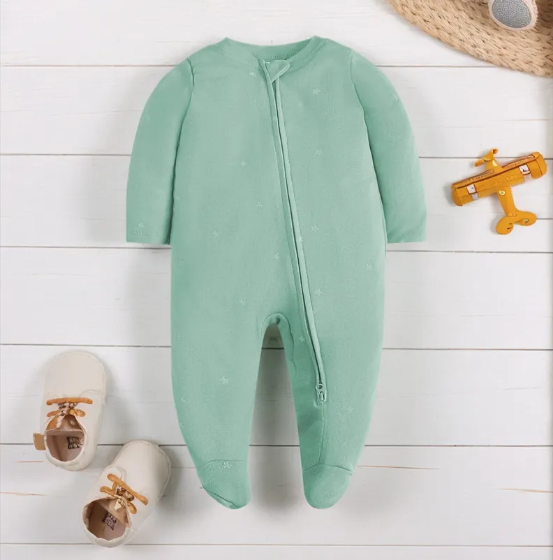 The variety of closures — including full‑length zippers with protective flaps and snap‑button fronts — ensures that dressing and diaper changes are quick and seamless. This is especially helpful during nighttime awakenings when simplicity and speed matter most. Soft elastic waists and flexible cuts support unrestricted movement, allowing babies to stretch, roll, and move naturally without feeling confined.