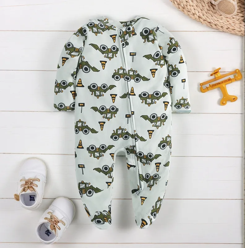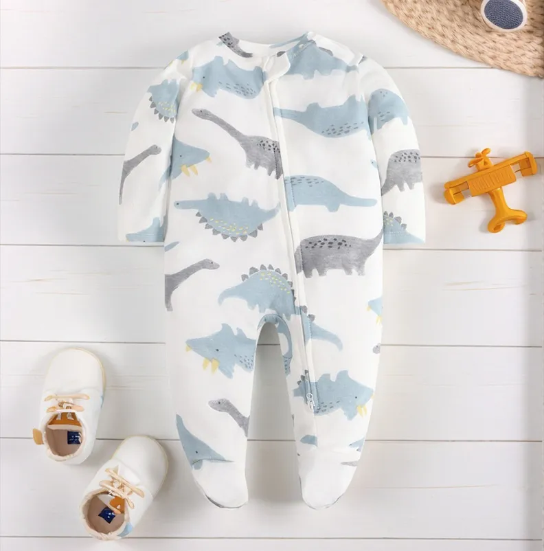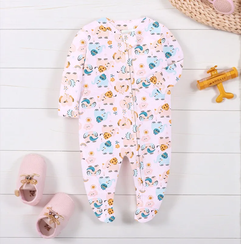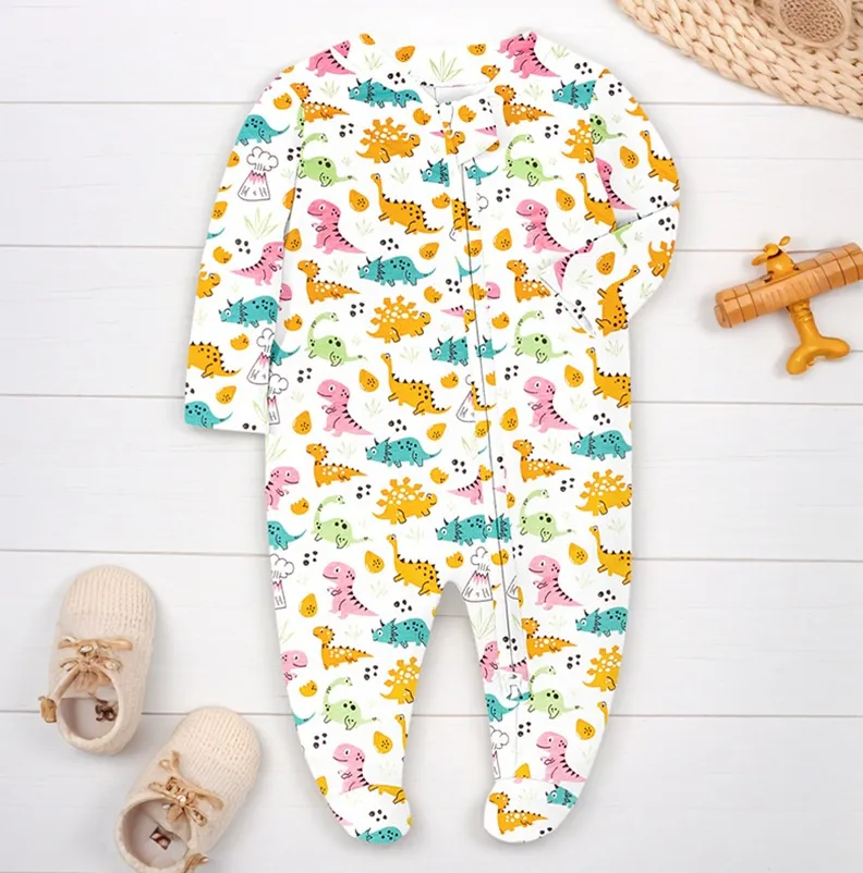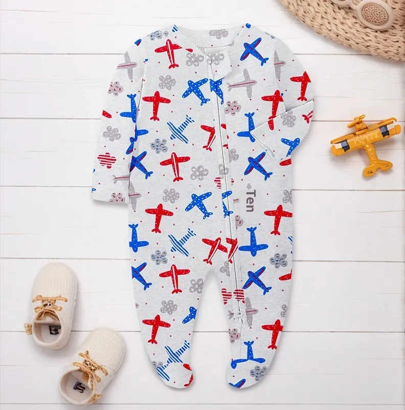 Typical designs include one‑piece footed pajamas (often called “sleepers”), two‑piece sets (top and pants/shorts), and convertible styles with foldover foot cuffs. Many pajamas feature snap closures, zipper fronts with safety covers, or gentle elastic waists that streamline dressing and diaper changes while ensuring secure closure throughout sleep. Flatlock stitching, tag‑less labels, and non‑abrasive seams help reduce friction and enhance comfort — a priority for babies who spend significant time in contact with their pajamas.