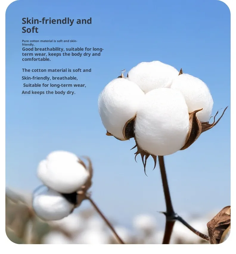 Made from gentle materials like cotton, organic cotton, bamboo blends, and soft knit to enhance comfort, control moisture, and reduce skin