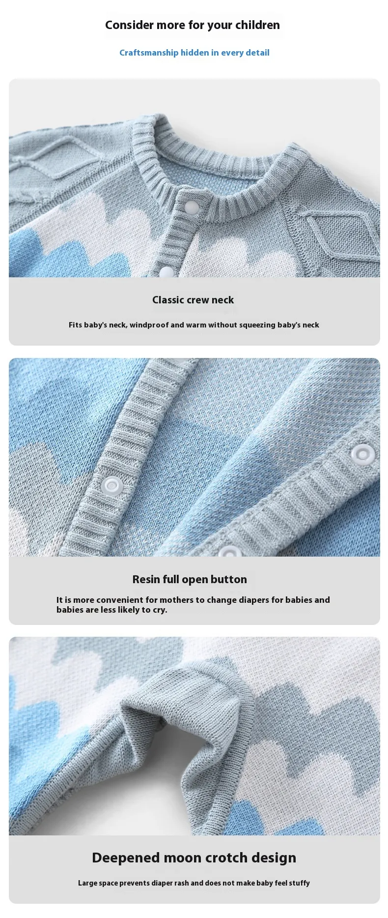 Baby Hooded Long-sleeved Knitted Cotton Jumpsuit Hat Suit