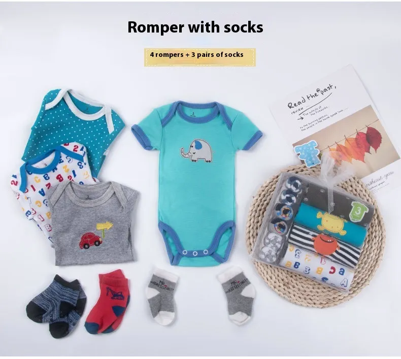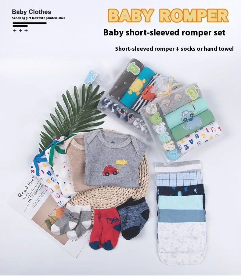 Color: Baby girl romper towel, baby girl romper socks, baby boy romper towel, baby boy romper socks