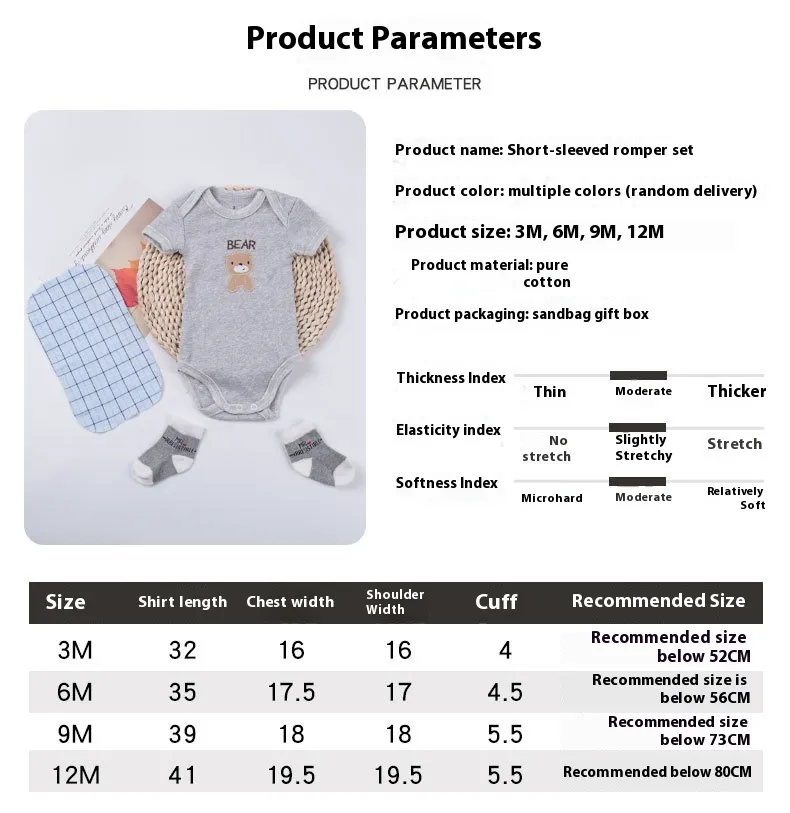 Includes a jumpsuit, socks, and towel – everything parents need for daily baby care.