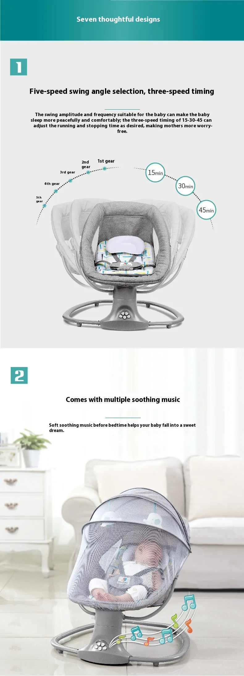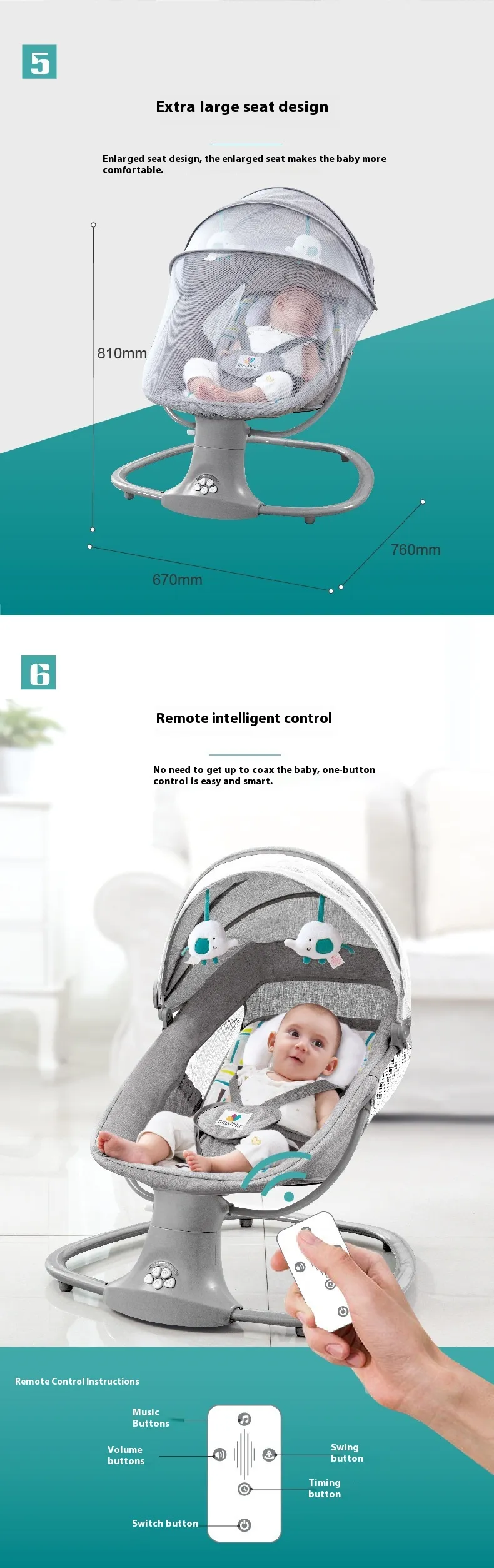 The multi-functional design of this product means you don’t need to buy separate chairs, bassinets, or rockers. It combines all of these into one convenient solution, saving you both space and money. Whether you're feeding, rocking, or letting your baby nap, this chair is the ideal, versatile product for parents.