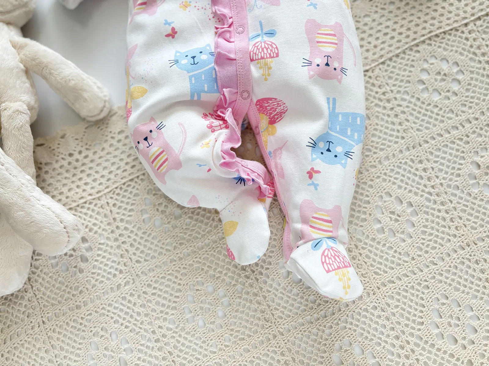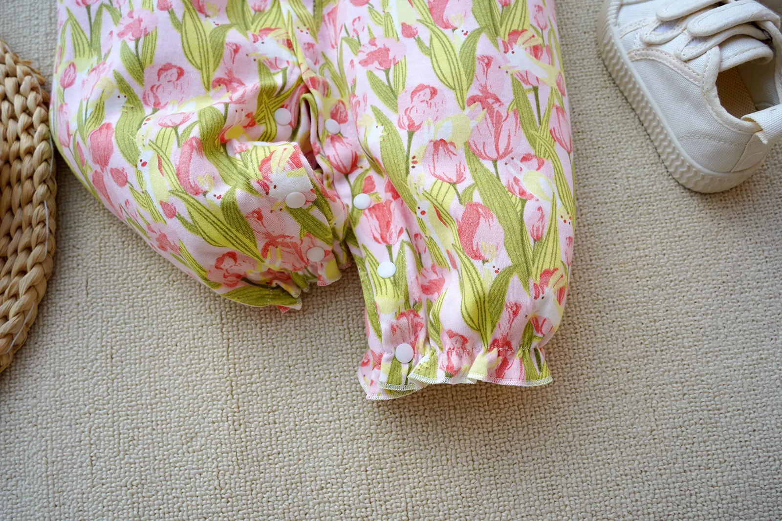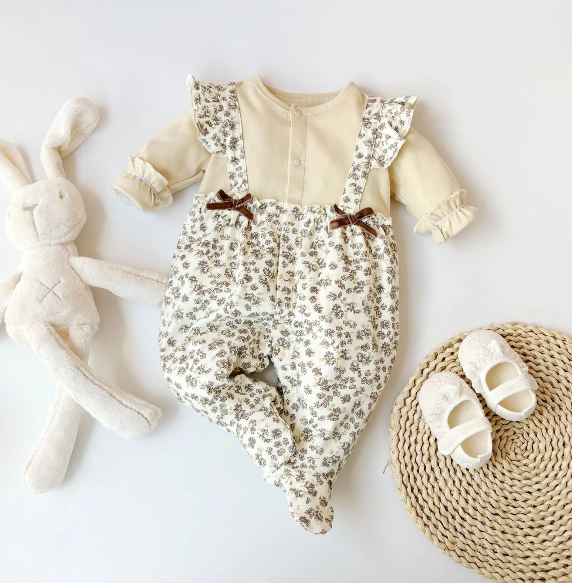 Its classic design and soft texture make it suitable for layering under other clothing or wearing alone, offering both style and functionality. Ideal for daily wear, outings, or as a baby shower gift, this cotton jumpsuit keeps infants comfortable while supporting their natural movement and activity.
