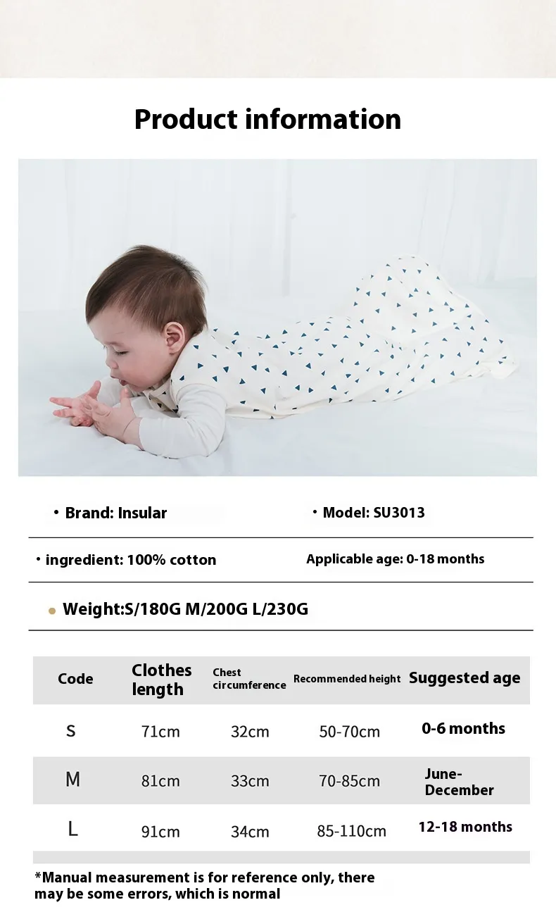 Size: 71CM (suitable for 0-6 months),81CM (suitable for 6-12 months),91CM (suitable for 12-18 months)