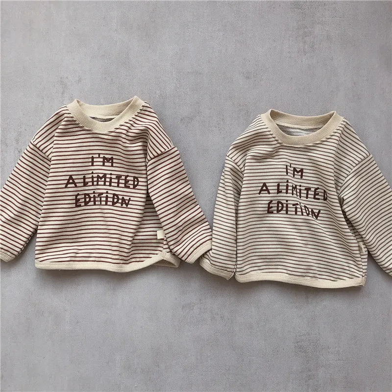 Baby suit Korean version spring new baby alphabet striped T-shirt patch casual pants baby two-piece suit