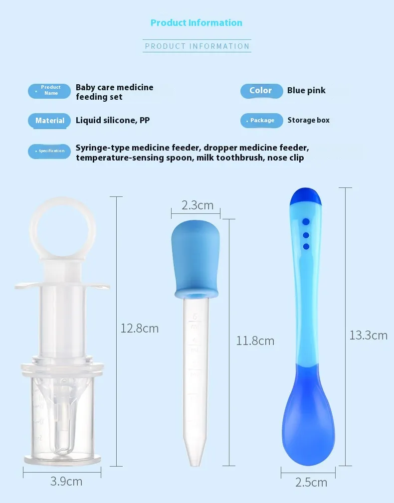 Silicone safety medication dispenser+dropper dispenser+thermos spoon+nose clip+finger toothbrush