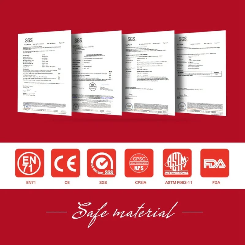 Made of food grade silicone, non-toxic, BPA free, lead free, phthalate free.