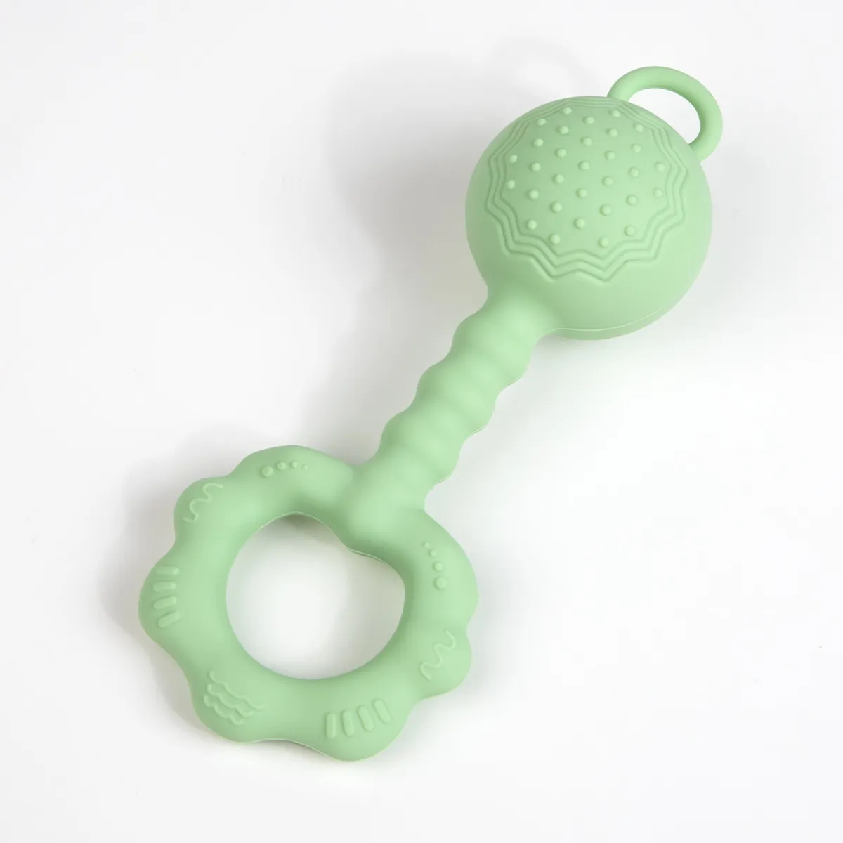 The Baby Teether Silicone Rattle is the perfect teething toy for infants, combining the soothing qualities of a teether with the engaging fun of a rattle. Designed to provide relief from teething discomfort while entertaining your baby, this teething toy is a must-have for every parent looking for a safe, effective, and enjoyable way to help their little one through the teething phase.