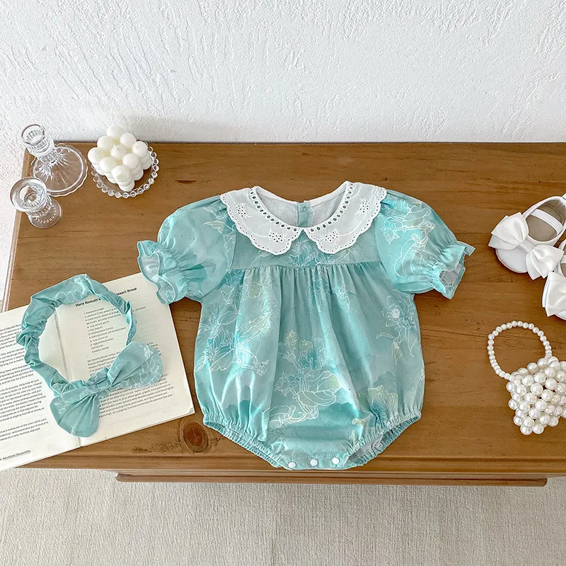 Introduction to the Baby Triangle Rompers Girl Puff Sleeve Dress