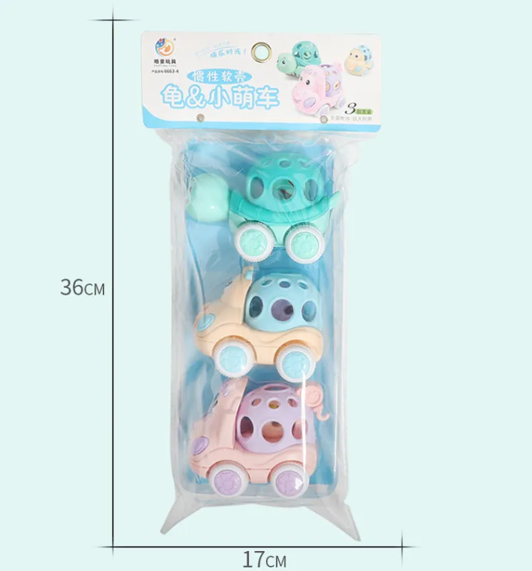 Color: turtle rattle car, smiling face rattle car, three rattle cars