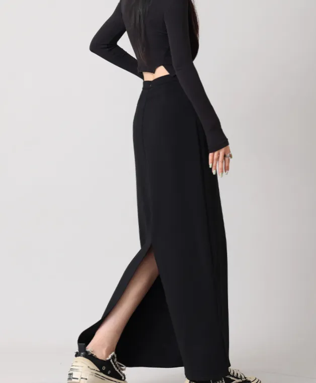 Back Slit Straight Tube Slimming High Waist Black Long Skirt – Sophisticated Style with a Touch of Elegance