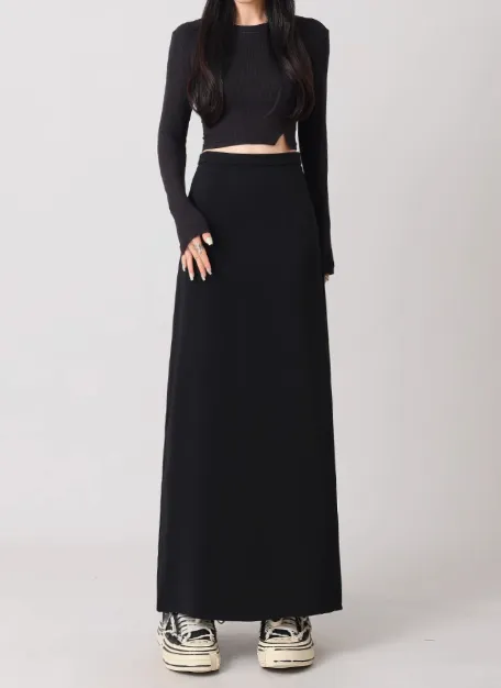 Back Slit Straight Tube Slimming High Waist Black Long Skirt