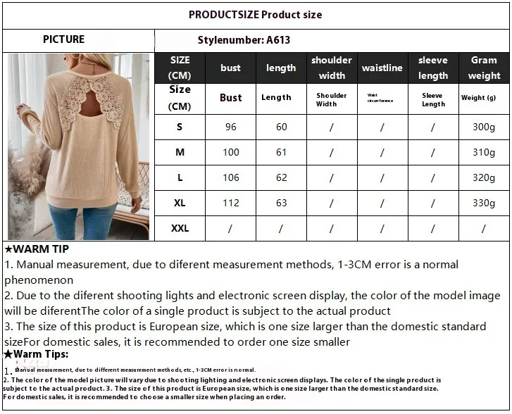 Flattering Silhouette: The long sleeves and lace cutouts offer a flattering fit
