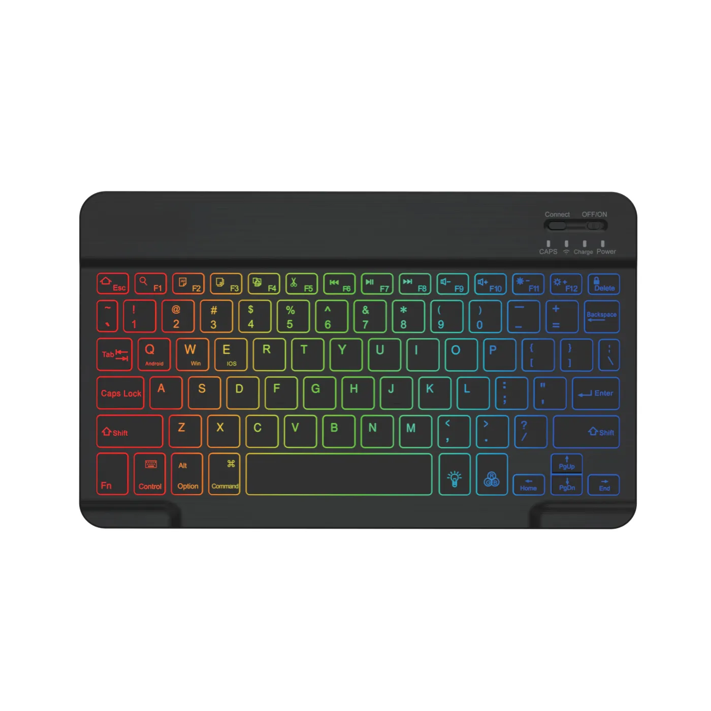 The Backlit Bluetooth Keyboard features vibrant, colorful backlighting that not only looks great but also makes typing in low-light environments much easier. Choose from multiple lighting colors to personalize your experience and work comfortably, whether you're at home, in a café, or on the go. The backlighting is adjustable, allowing you to customize the brightness to your preference.