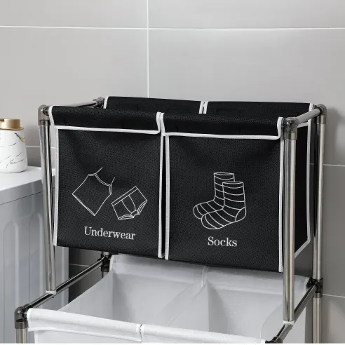 - CLOTHES LANUDRY SORTING - STQCPJ Dirty clothes laundry sorter hamper with 4 removable canvas labeled bags. You can distinguish your socks, underwear, which I think should be separated. It also sorts dark and light colored clothes to prevent them from being stained.