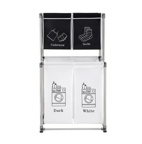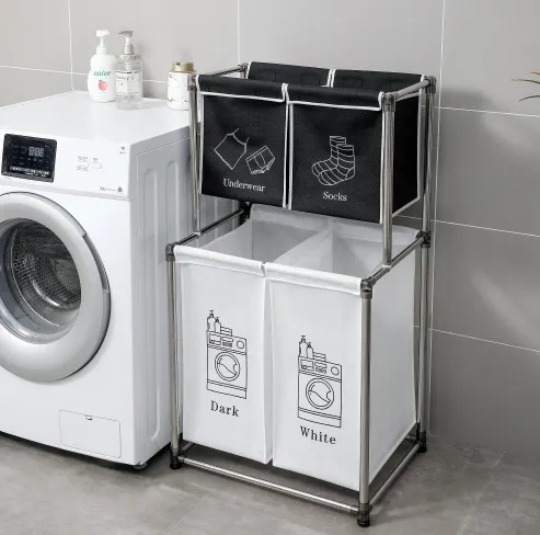 - STRONG FRAME - STQCPJ laundry sorter uses a double-layer design, which is stronger than a single-layer structure because it reduces the pressure and burden of the crossbar. The overall frame is made of hard aluminum to enhance hardness, and the non-slip design at the bottom provides the final protect of stability.