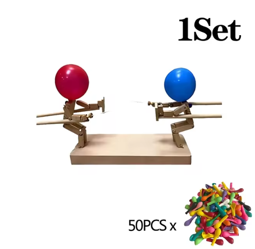 Challenge your family and friends to a thrilling balloon-popping duel! The goal is to use the wooden figurines to poke and pop as many balloons as possible. This fast-paced game promotes quick reflexes, coordination, and strategic thinking.