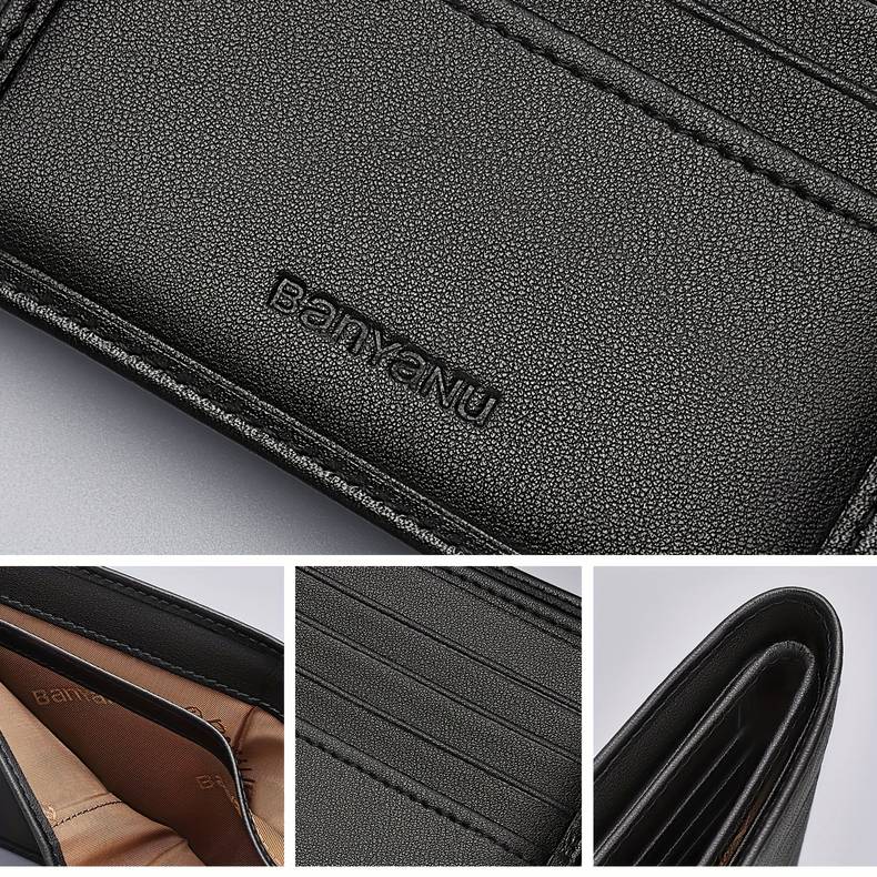 The BANYANU Men’s Short Wallet is crafted from premium top-grain leather, offering a durable, smooth, and vintage-inspired finish that develops character over time. Despite its compact size, this wallet is cleverly designed with 14 card slots, making it perfect for men who carry multiple cards daily—bank cards, IDs, business cards, membership cards, and more.
